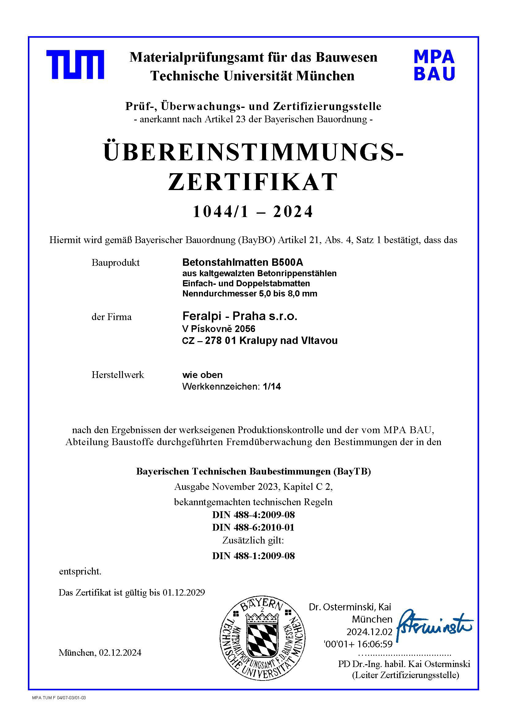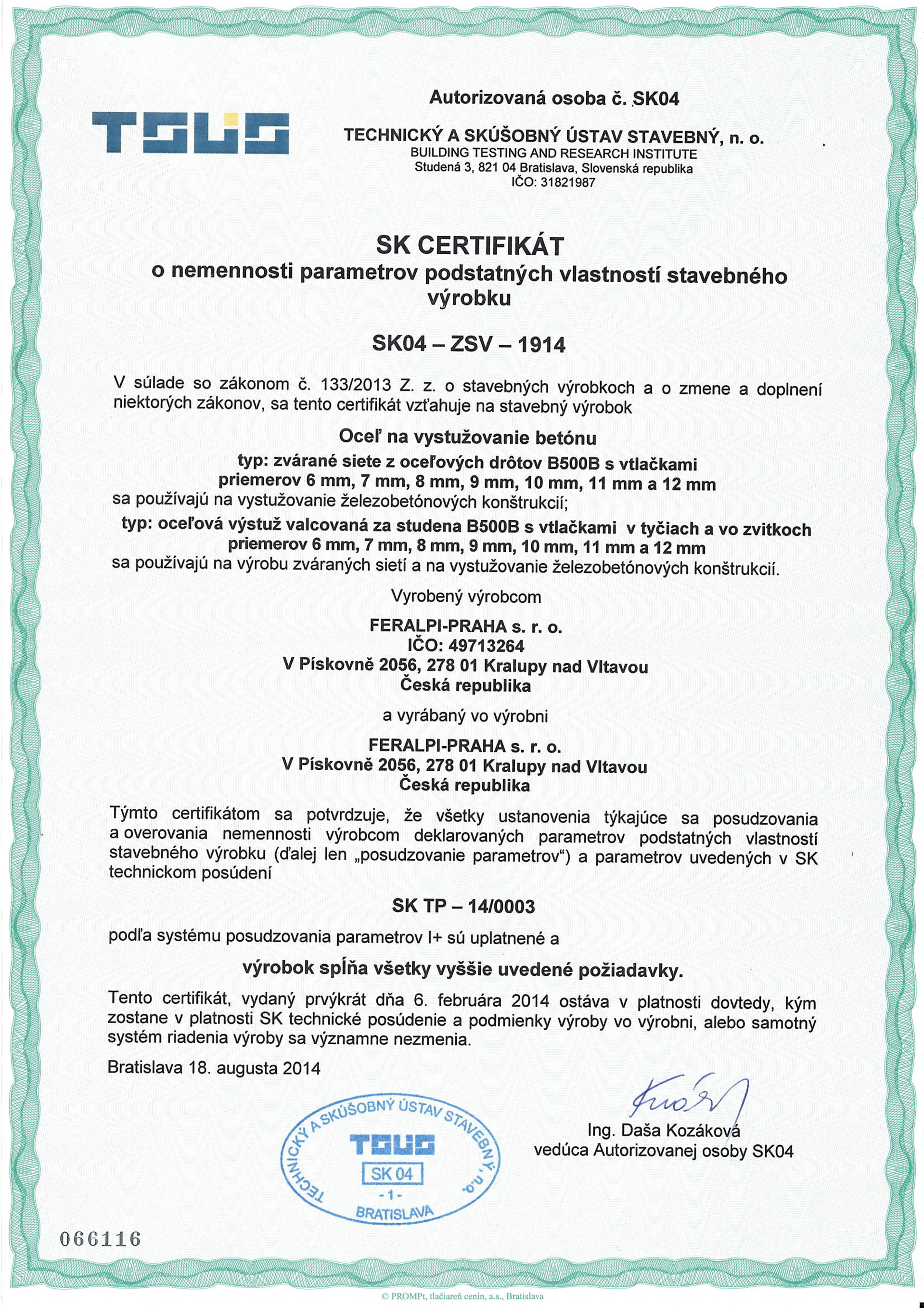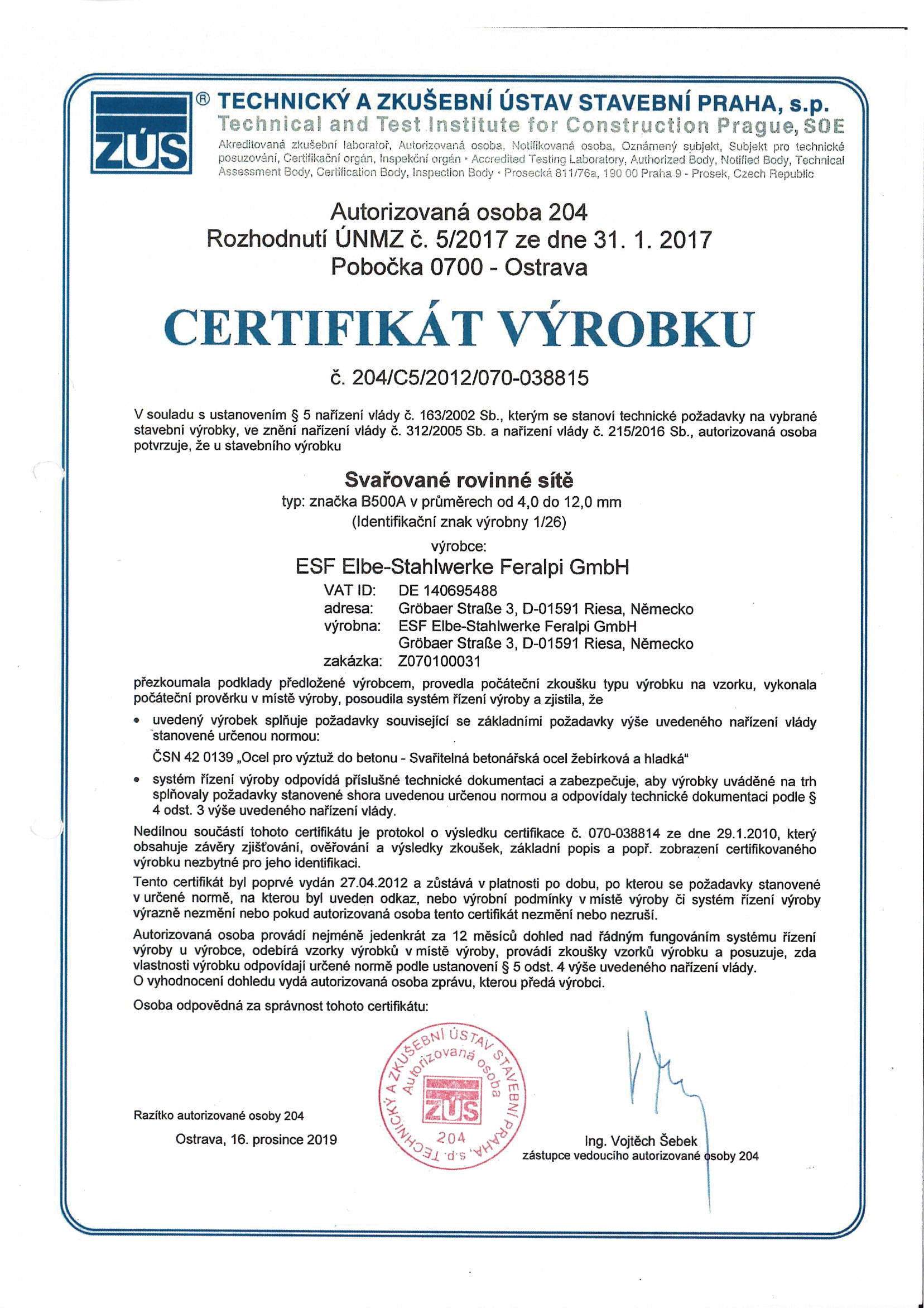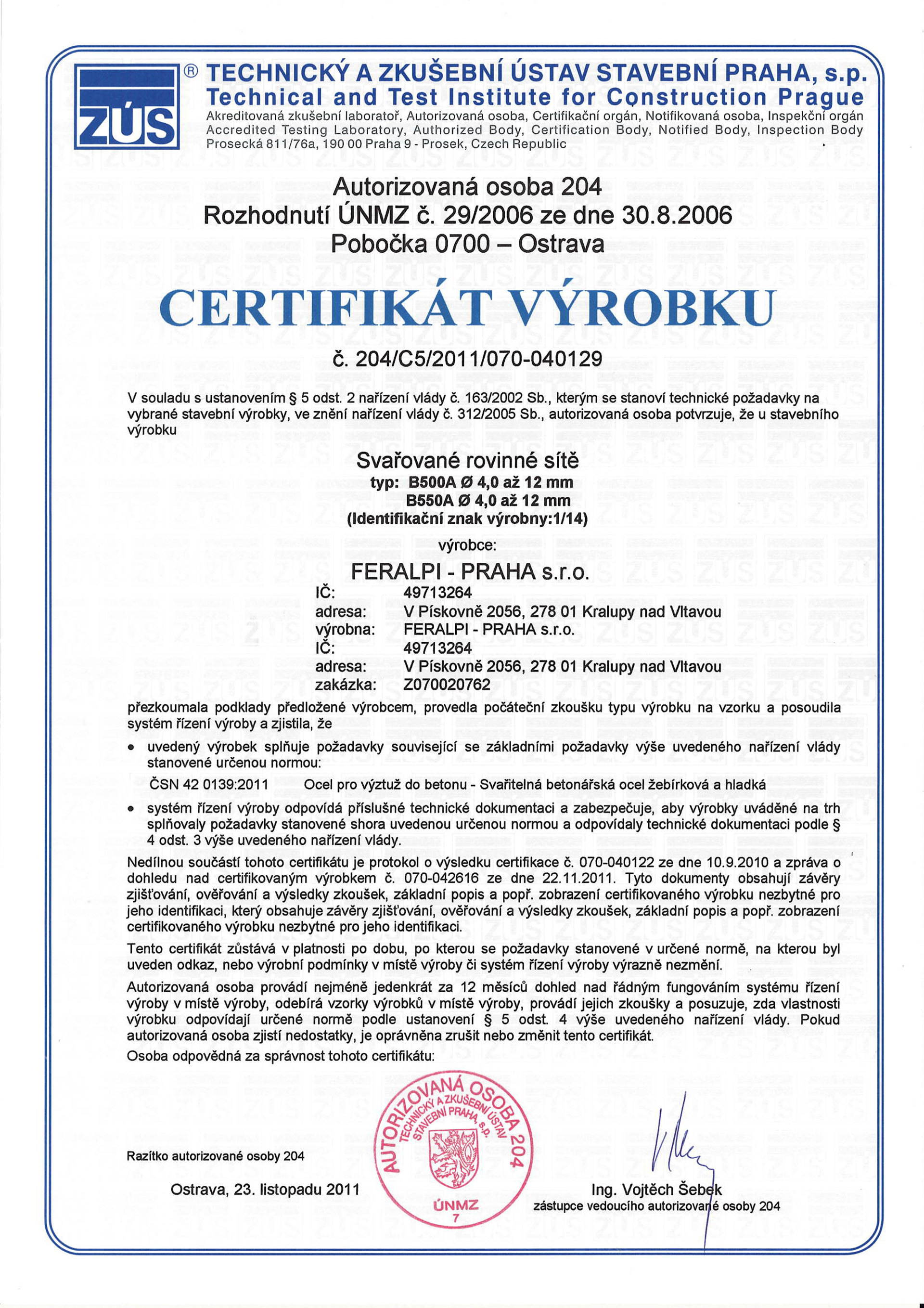 Vyráběno dle norem: ČSN 420139, DIN 488